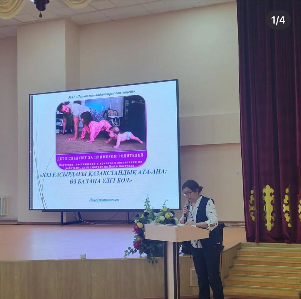Сәуір айында лицей психологтары бастауыш сынып ата-аналарымен «ХХІ ҒАСЫРДАҒЫ ҚАЗАҚСТАНДЫҚ АТА-АНА: ӨЗ БАЛАҢА ҮЛГІ БОЛ» тақырыбында психологиялық ағарту жұмысын жүргізді.