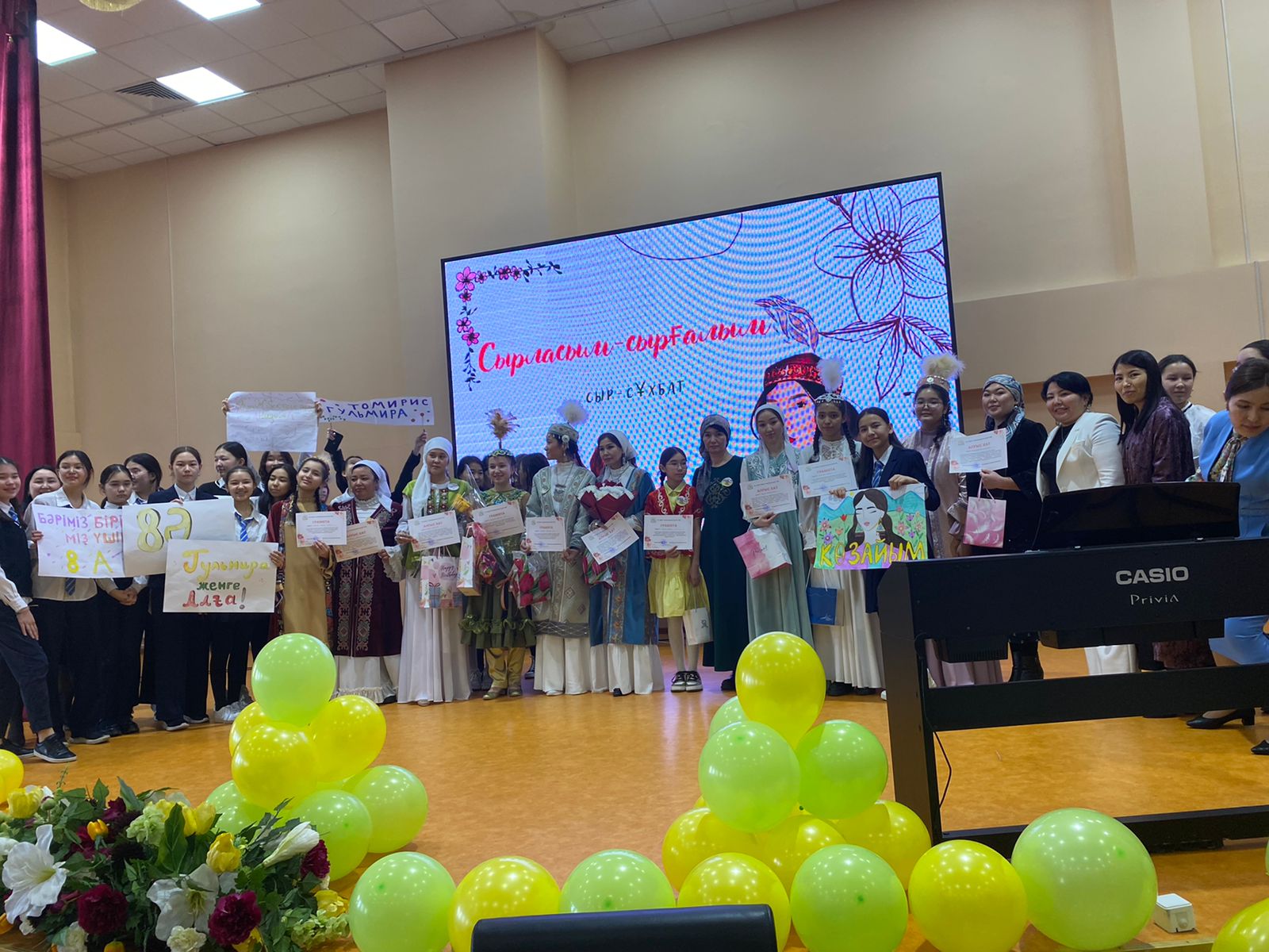 деп тілек,баталарын білдірісті. Жеңгелерімізбен ақылдаса отырып сұлу қыздарымыз үшін әр сынып өз аруларына «Сырғалым», «Ақ моншақ», «Ерке қыз», «Айкөркем», «Көзайым», «Қызжібек», «Тұмарым» ат қойып еркелетунің куәсі болдық.Қонақтар құрметіне сұлу қызымыз Альмира мен жеңгеміз Гүлнара Сапарқызы «Сырғалым-сырласым» әнімен отырыстың сәнін кіргізді. Жеңге мен сіңілі арасындағы сырластық, сыйластық туралы жағдаяттық тапсырмалар беріліп жеңгелер өз шешімдерін айтып өнеге көрсетіп жатты. Жеңгелеріміз көрермендермен қосылып «Мен қазақ қыздарына қайран қаламын» әнін караокемен шырқады. Сонымен қатар көкөністерді жеуге ыңғайлы әрі эстетикалық талғамға сай етіп сәндеп әзірлеу жолын көрсетті. Сыр-сұхбат өткізуіміздің мақсаты халқымызда қалыптасқан керемет дәстүр бойынша жеңге мен сіңілі арасындағы қарым-қатынастың жалғасын шыңдау, жеңгелердің қыз тәрбиелеуге қосар үлесінің маңызын,заманауи жеңгелер мен қайын сіңілілердің үлгісін таңдау болса. Сыр-сұхбат өз мақсатына жетті. Қатысып ,жауапкершілікпен ұрпақ тәрбиелеуге ат салысқан барлық жеңгелер мен сұлу қыздарымызға,отбасыларына алғысымызды білдіреміз!