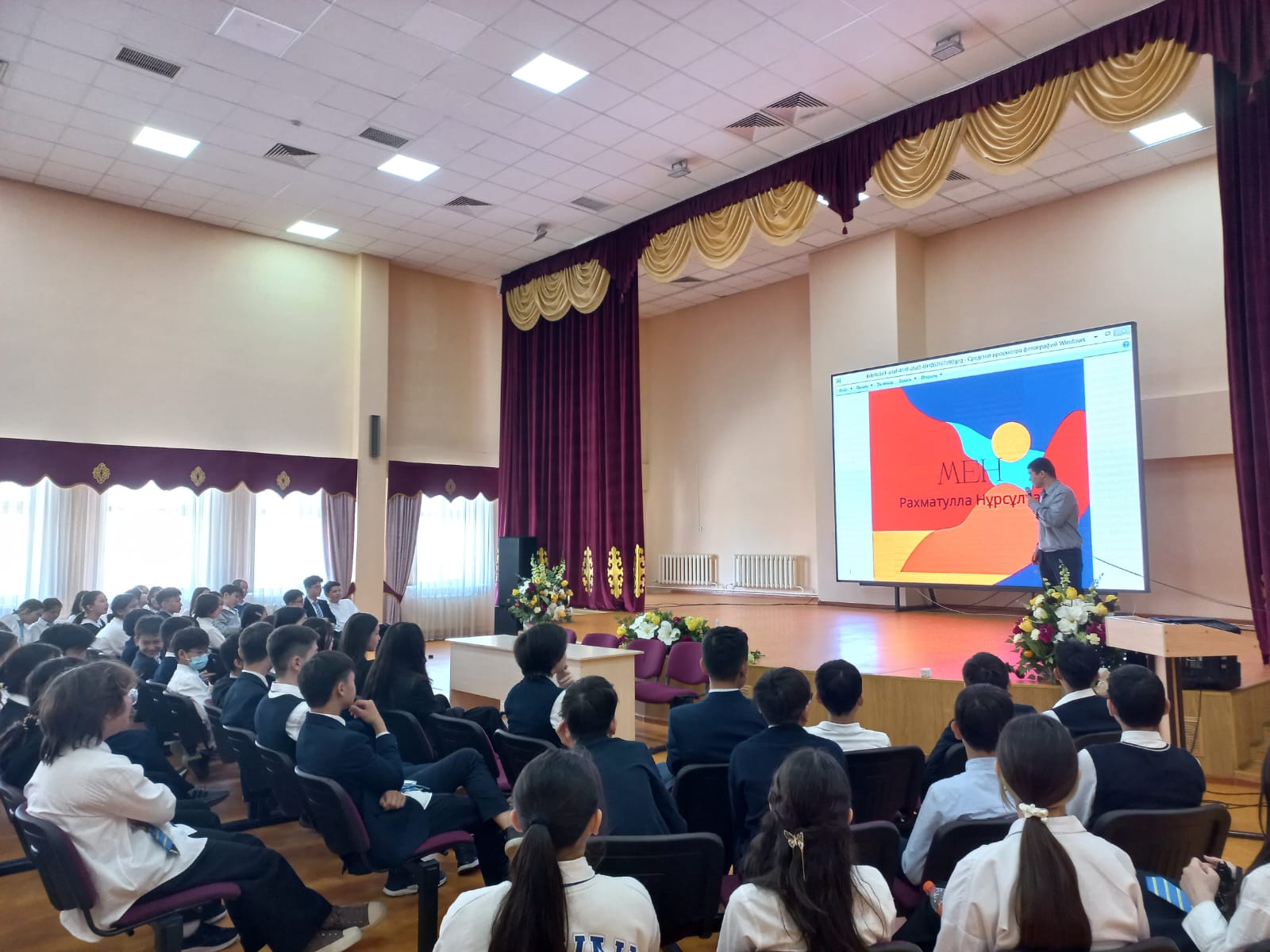 Осы мақсатта өткізілген шарада жоғары сыныптың белсенді оқушылары өз басынан өткен түрлі жағдайларды әңгімелей отырып, тығырықтан қалай шыққанын және үлкен жетістіктерге жету жолдарындағы кездескен кедергілерді де айтып өтті. Оқушылар өздерін мазалаған сұрақтарын қозғап, «Ашық микрофон» айдарымен жалғасты. Дәріс соңында кино көрсетіліп, позитивті слайдпен аяқталды.